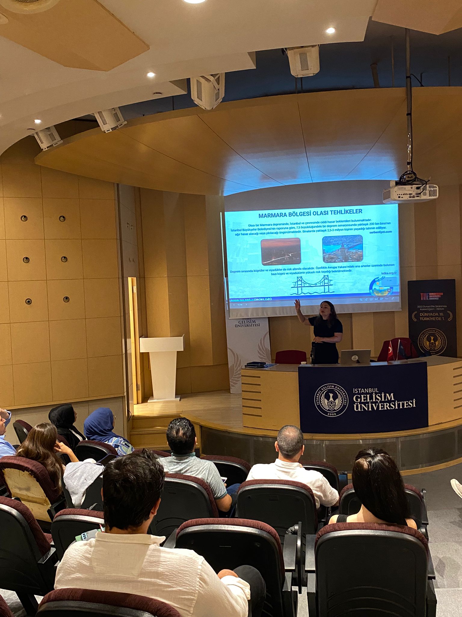Istanbul Gelisim University (IGU) Disaster and Emergency Coordination Unit organized a “Disaster and Awareness Training for Staff and Students” in line with the official directive sent by the Istanbul Governorship and the Provincial Disaster and Emergency Directorate. During the training, participants were informed about the “Drop-Cover-Hold On” technique and building evacuation procedures within the framework of workplace emergency plans.