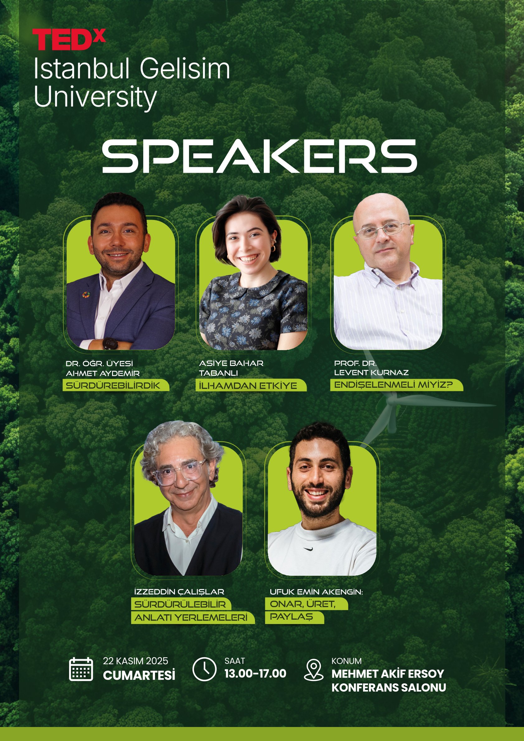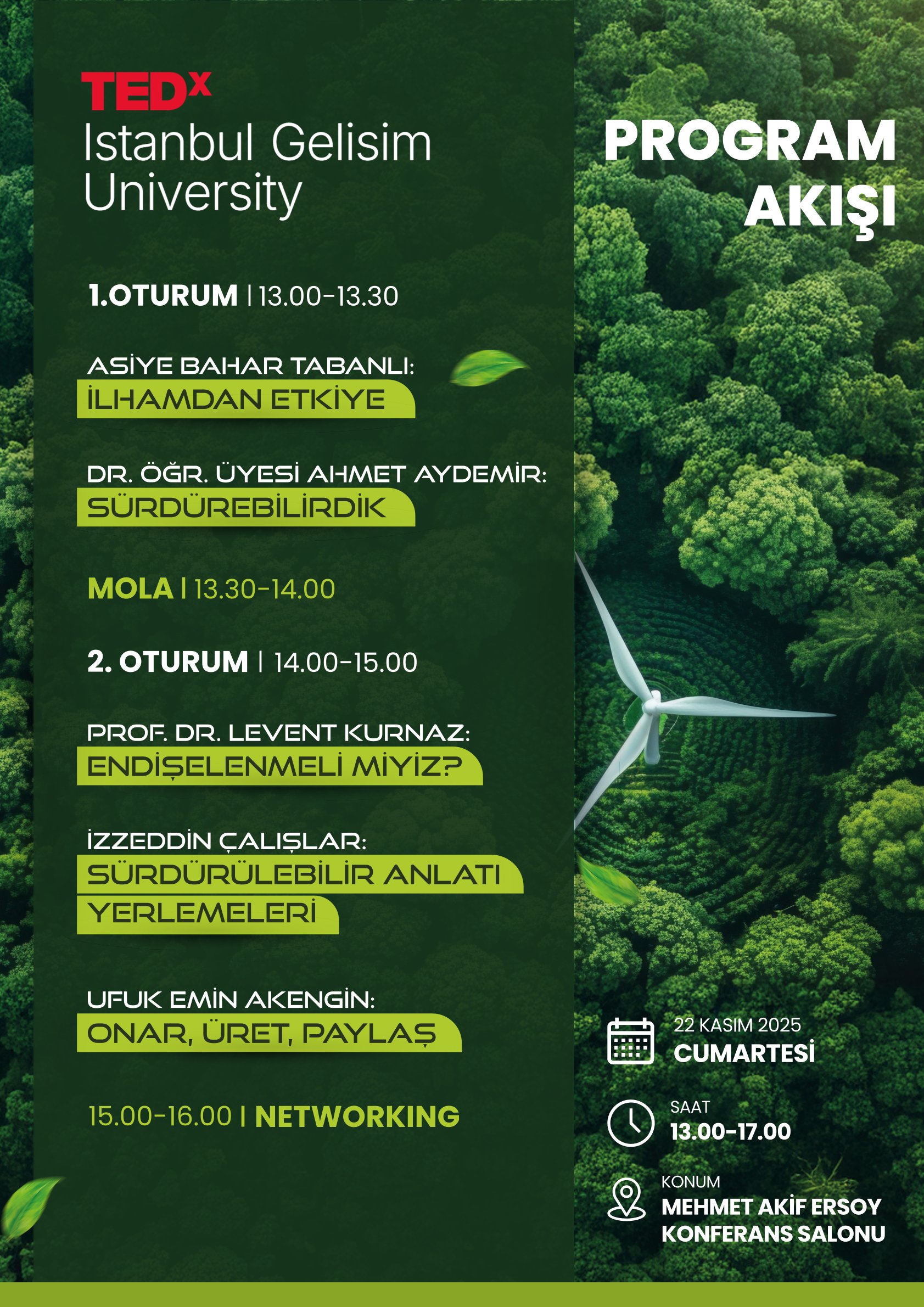 İstanbul Gelişim Üniversitesi, bu yıl ilk kez düzenlenen TEDx etkinliğiyle sürdürülebilirlik odaklı ilham verici konuşmaları bir araya getiriyor. 22 Kasım 2025 Cumartesi günü gerçekleşecek etkinlikte uzman konuşmacılar, geleceğin dünyasına yön verecek fikirlerini paylaşacak.