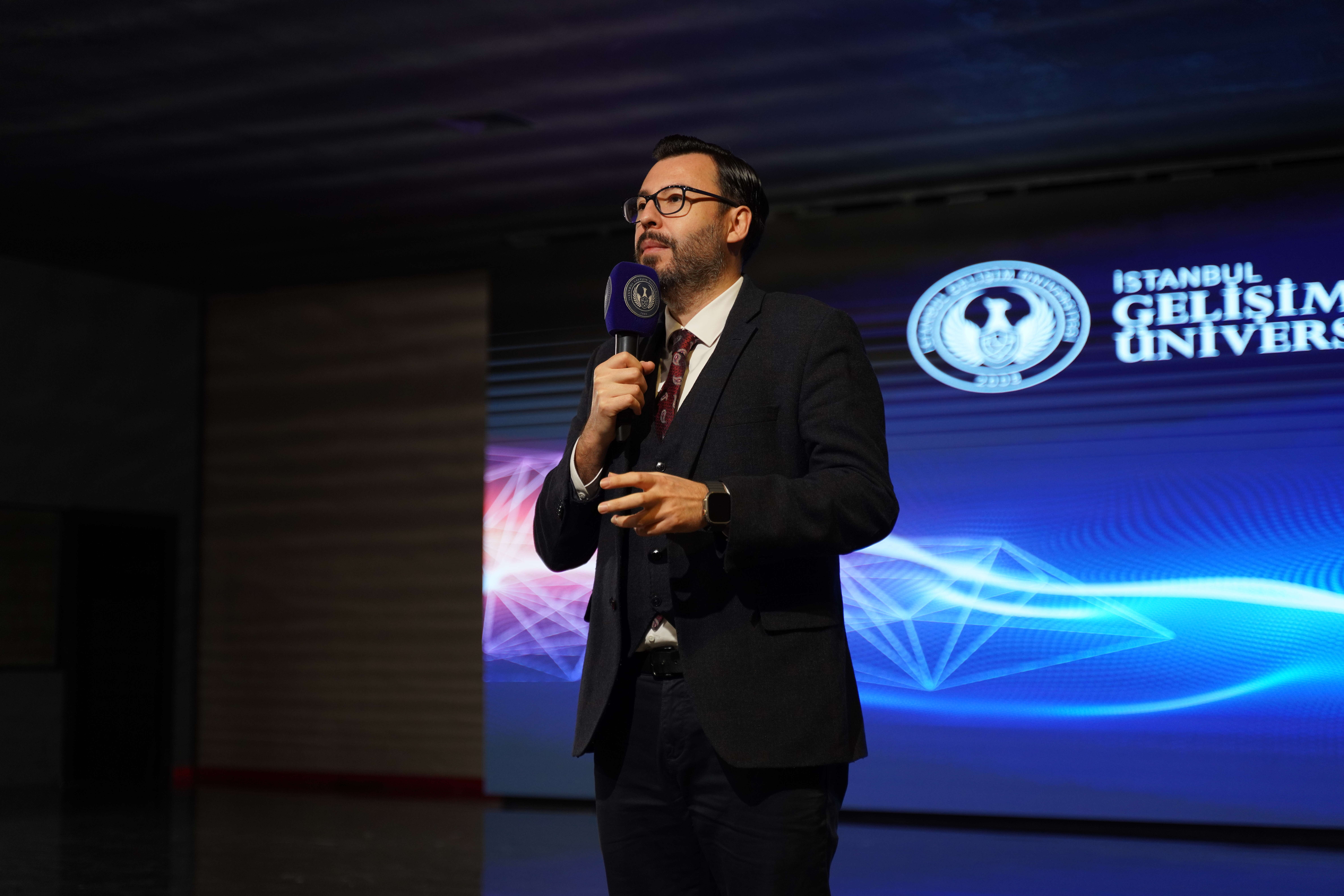 Etkinlikte konuşan İstanbul Gelişim Üniversitesi Genel Sekreteri