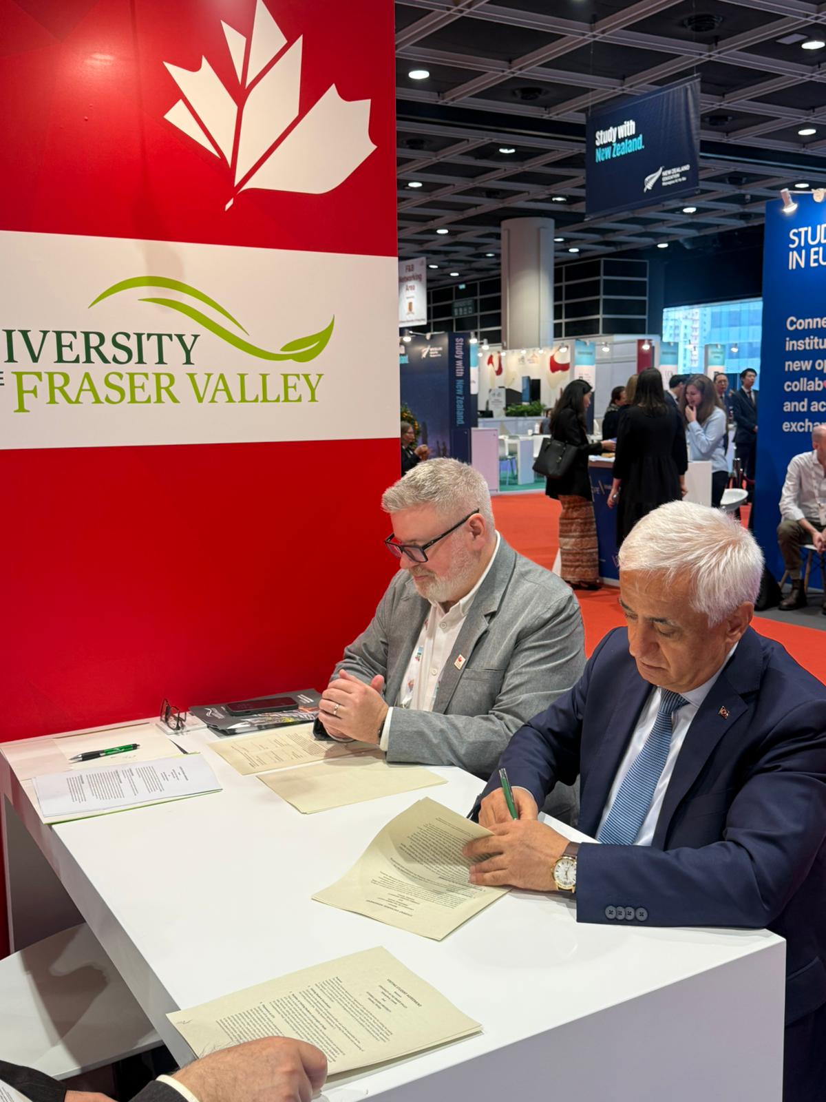 EAIE 2025 Konferansı’nda 9–12 Eylül 2025 tarihleri arasında İsveç’te İGÜ Uluslararası Değişim ve İş Birliği Koordinatörü Alisa Usubova ile Kanada’da bulunan University of the Fraser Valley (UFV) Uluslararası Birimi’nden Müdür Yardımcısı Walter Smith ve Başkan Yardımcısı David McGuire arasında gerçekleştirilen ilk temasın ardından, APAIE 2026 sırasında UFV ile öğrenci ve akademisyen değişimleri, ikili iş birliği programları, ortak araştırma projeleri ve çift diploma imkânlarını kapsayan resmi ikili iş birliği anlaşması imzalandı.